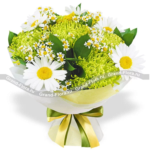 Уточняйте наличие ромашек у операторов. Возможна замена на ромашковидную хризантему!